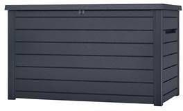 Ontario opbergbox antraciet Deze opbergbox is de oplossing voor uw tuinkussens. Met een inhoud van 870 liter heeft deze box veel opbergruimte beschikbaar. De gasveer maakt dat u geen handen te kort heeft bij het opbergen en tevoorschijn halen van uw .